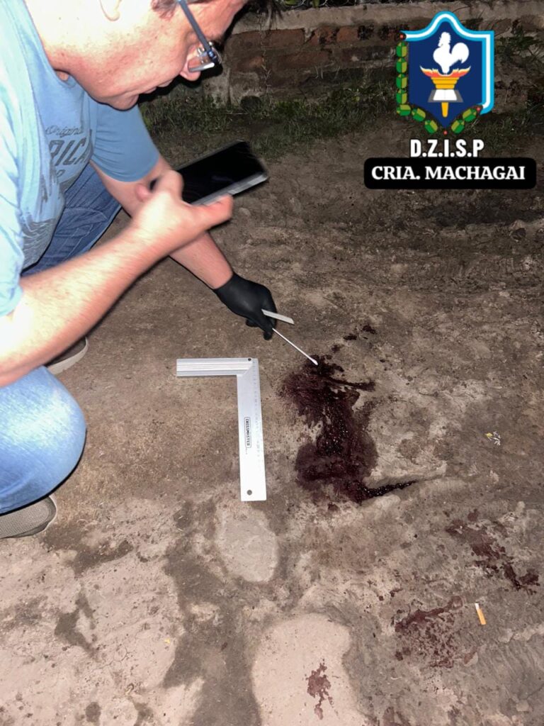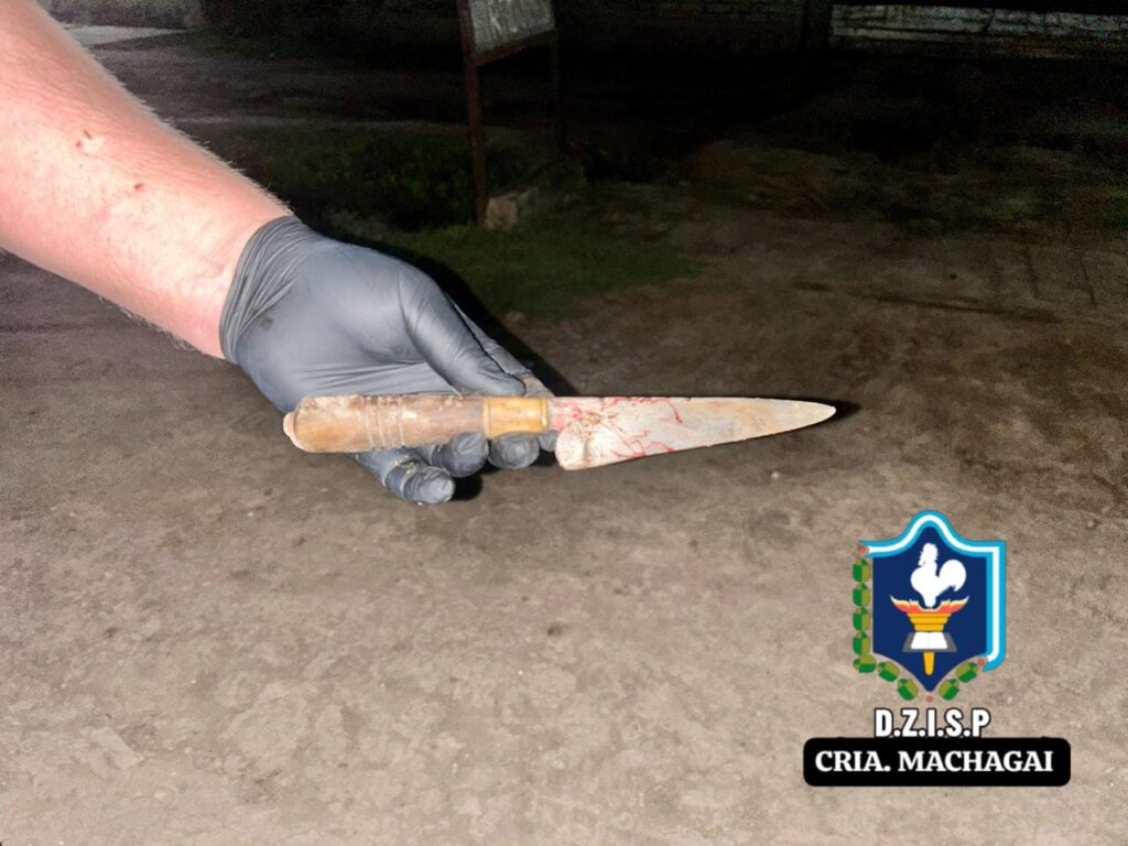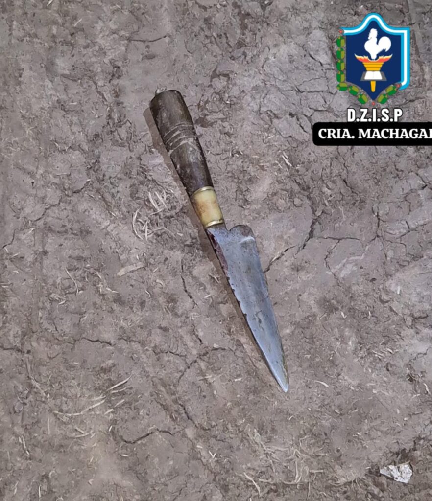 De inmediato, agentes de la Comisaría de Machagai se dirigieron al lugar de la pelea, donde vecinos señalaron que la víctima había discutido y forcejeado con un hombre y sus dos hijos. En la escena encontraron manchas de sangre y un cuchillo de 10 centímetros, presuntamente utilizado en el ataque.