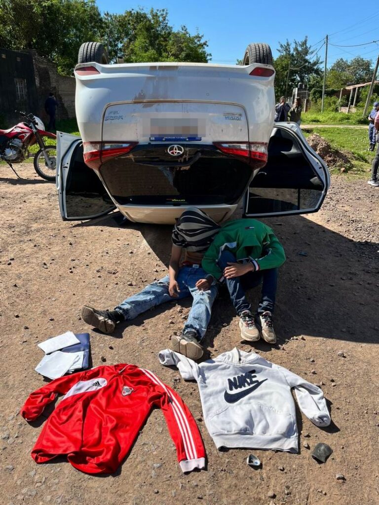 En un momento dado volcó el vehículo en cuestión, tras impactar con otro, luego del accidente comenzaron a salir varias personas del auto para intentar darse a la fuga pero al no lograr su cometido, fueron detenidas por los uniformados.