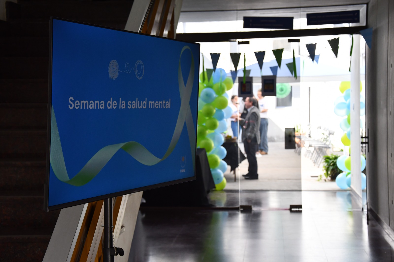 El equipo de profesionales del área Bienestar Laboral proponen actividades lúdicas de interacción en el stand dispuesto en el patio interno trasero del edificio; además, todo el personal de la institución puede acceder a información diversa y útil sobre Salud Mental, con tips de concientización, cuidado, acción y ayuda proyectadas en 8 pantallas led dispuestas en los distintos pisos y espacios comunes del edificio central de gestión UNNE.