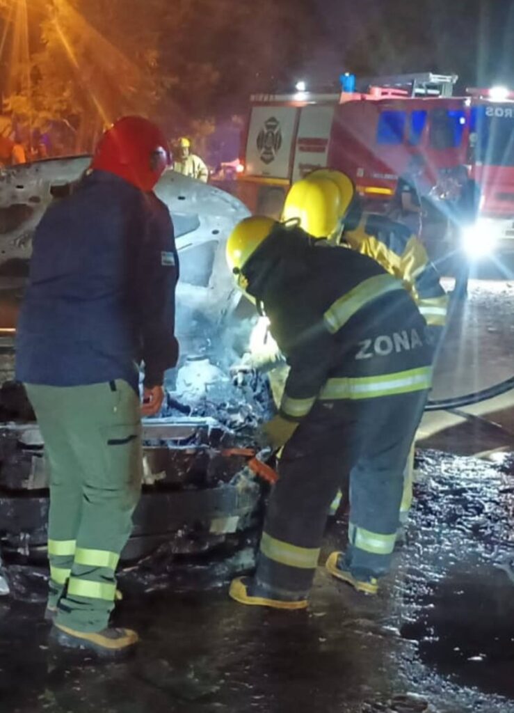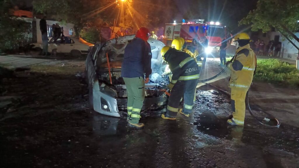 Alertados por los vecinos, bomberos de la Policía y del cuartel Zona Sur acudieron rápidamente y lograron sofocar el fuego, aunque el rodado resultó gravemente dañado.