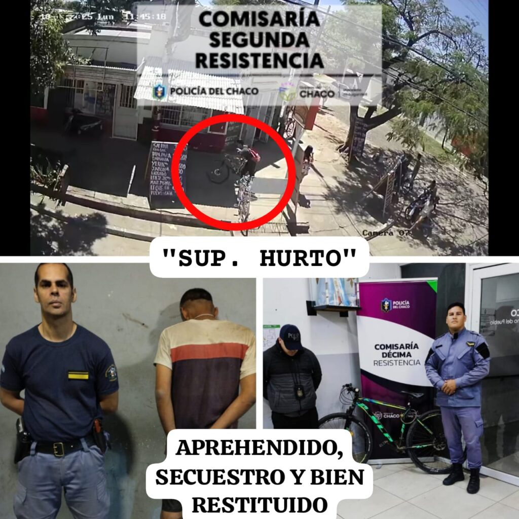 Intervino el personal de la Comisaría Segunda Metropolitana, junto con la colaboración de la Comisaría Décima de Resistencia, lo que permitió recuperar una bicicleta denunciada como sustraída y demorar al presunto autor del hecho.