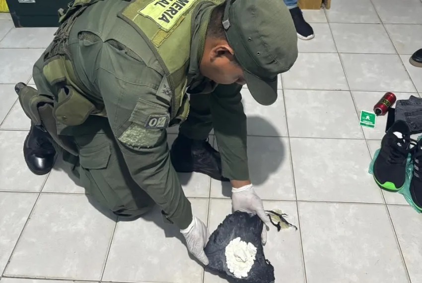 Al abrir su mochila, los gendarmes hallaron un par de zapatillas, la cual ocultaba un envoltorio de nylon negro, que contenía una sustancia blanca y polvorienta.