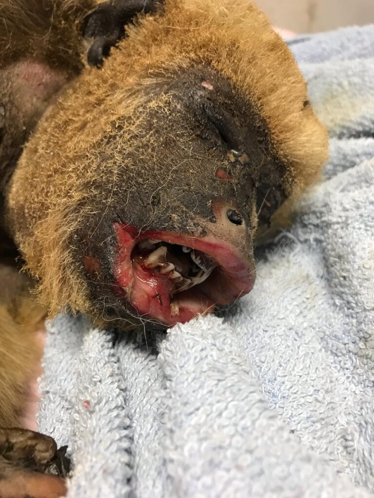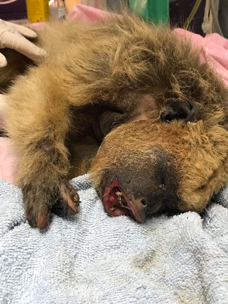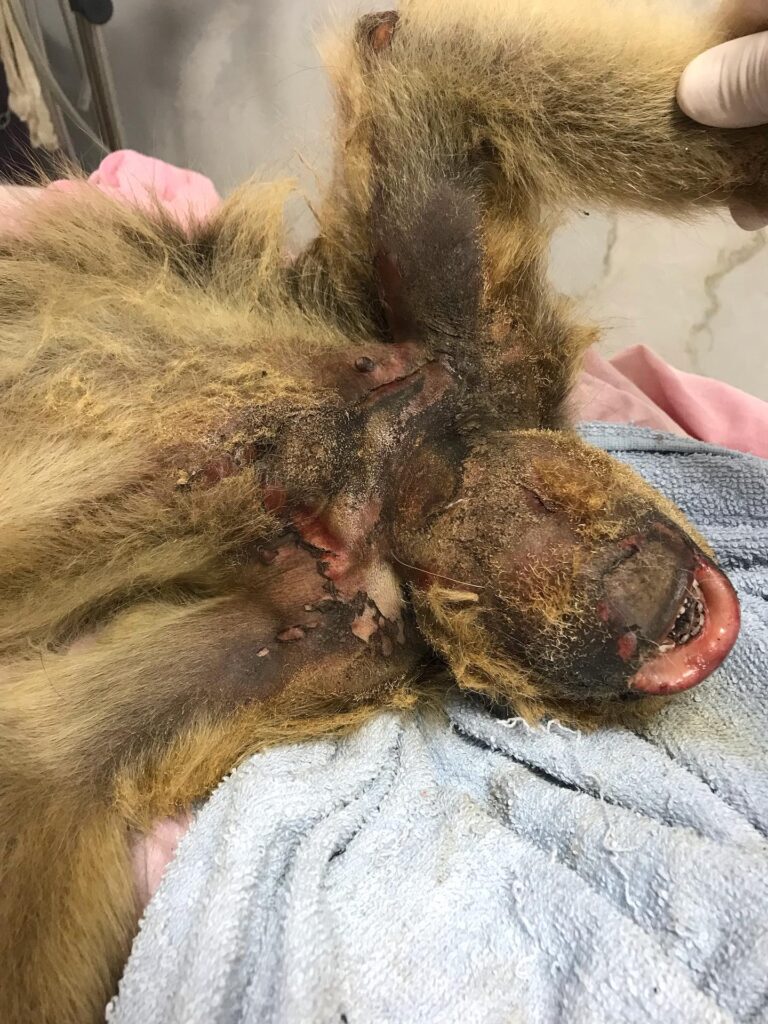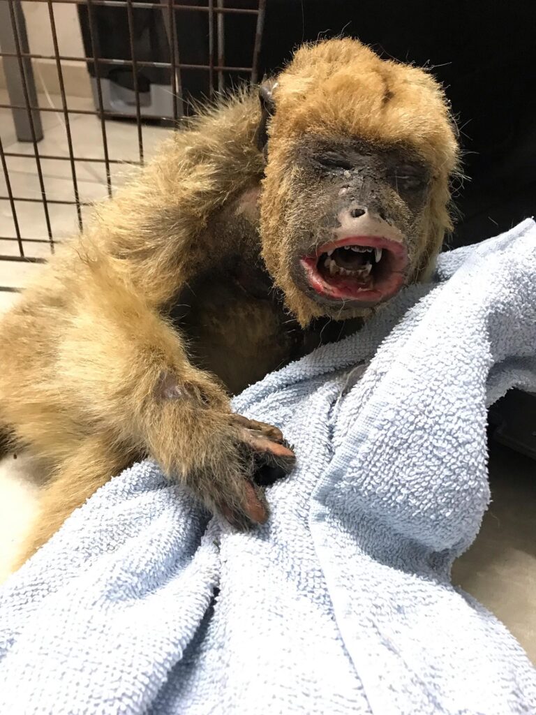 Debido al grado de sus lesiones, la mona presentaba imposibilidad de alimentarse, dolor intenso y rigidez corporal. A pesar de la terapia aplicada, el animal falleció a las 8 de la mañana siguiente (domingo) por colapso pulmonar.