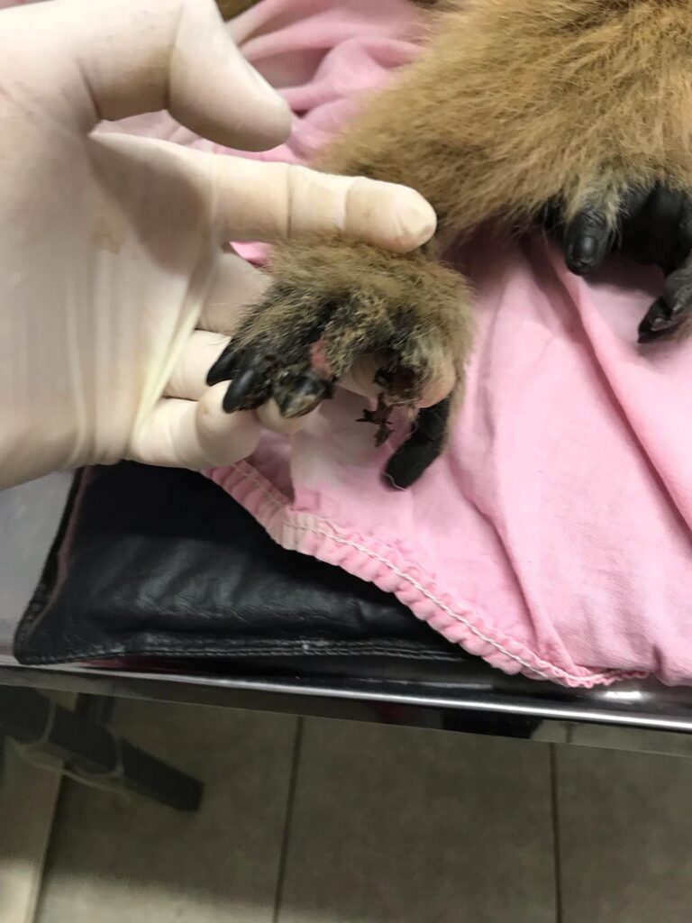 El sábado por la noche, una mona adulta de la especie Alouatta carayá (VU) «ingresó en estado crítico a nuestra institución tras sufrir graves lesiones compatibles con electrocución«, informó este domingo en sus redes sociales la Fundación Carayá Róga. Las heridas afectaban la boca, garganta, paladar, labios, rostro, ambos ojos, cuello, pectorales, brazos, mano y pata, con pérdida de algunos dedos.