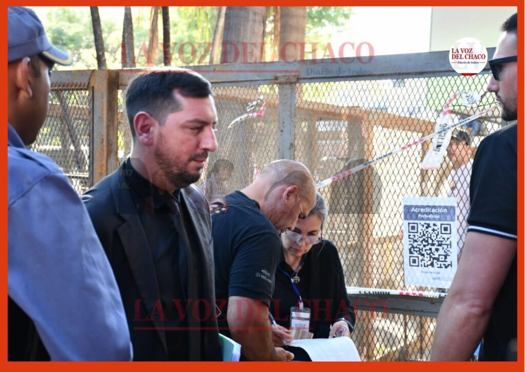 Afuera, antes del arranque, el abogado de Emerenciano Sena, Ricardo Osuna, que intentará que su defendido zafe de una condena. Esa es la estrategia que buscó desde el primer día. Adentro, César Sena, el principal imputado.