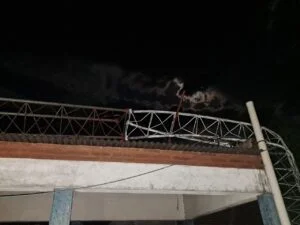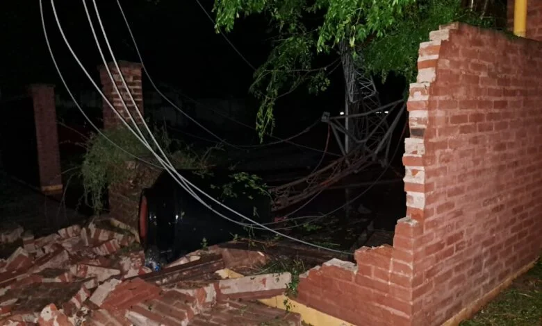 El fenómeno meteorológico se desató cerca de las 22:15, cuando el temporal azotó con fuerza la zona. Uno de los daños más significativos se produjo en la antena de Ecom Chaco, ubicada detrás de la Comisaría local, que colapsó y cayó sobre el muro perimetral del sector de acceso para móviles policiales. El impacto generó también daños estructurales en esa área.