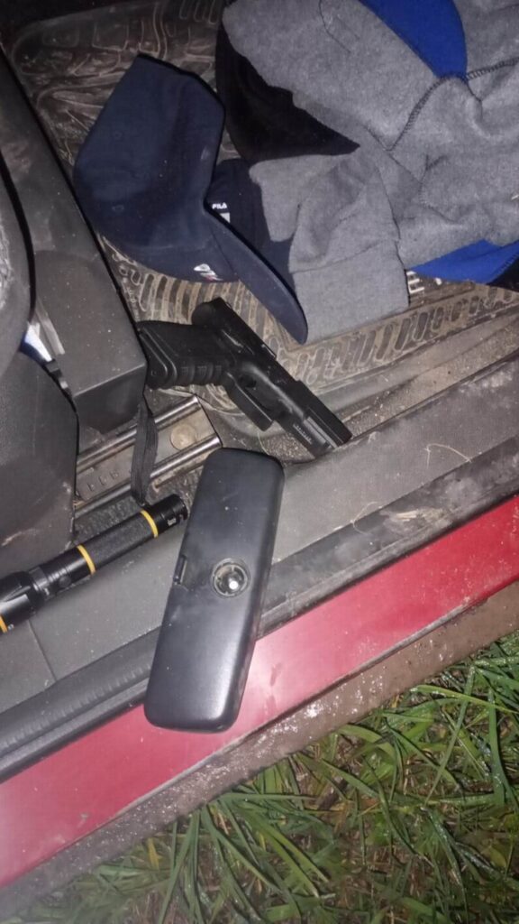 Adentro del vehículo, los uniformados encontraron una pistola Glock 9 milímetros registrada como sustraída desde 2018, además de equipos de comunicación y un teléfono celular que resultó clave para avanzar en la investigación.