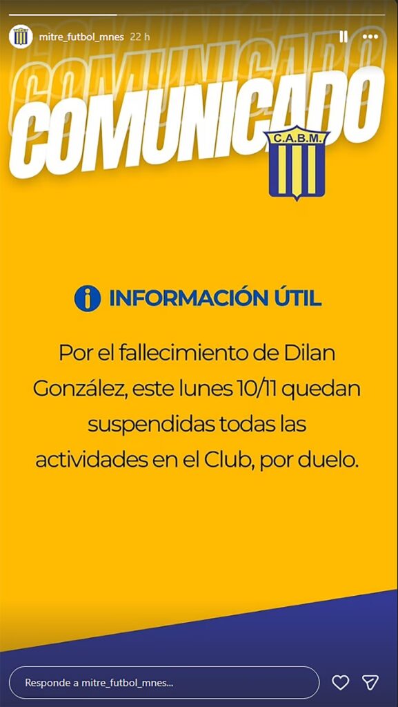 El club que lo vio crecer suspendió todas sus actividades y publicó un desgarrador mensaje en sus redes sociales. “Con profundo dolor hoy nos toca despedir a Dilan González, uno de los nuestros, familia. Desde pequeño vistió los colores del Auriazul y llenó de alegría los pasillos del club”, comienza la publicación de Instagram.
