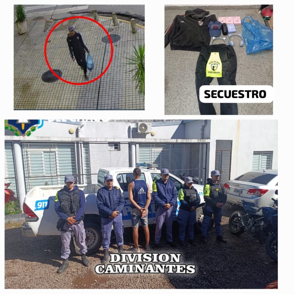 Esta mañana, un hombre rompió la vidriera de un comercio en calle Frondizi y se llevó auriculares y un parlante. Gracias a las cámaras de Videovigilancia y a un rápido operativo de la División Caminantes, fue localizado a pocas cuadras —en Pueyrredón y Venezuela— con la bolsa llena de productos.