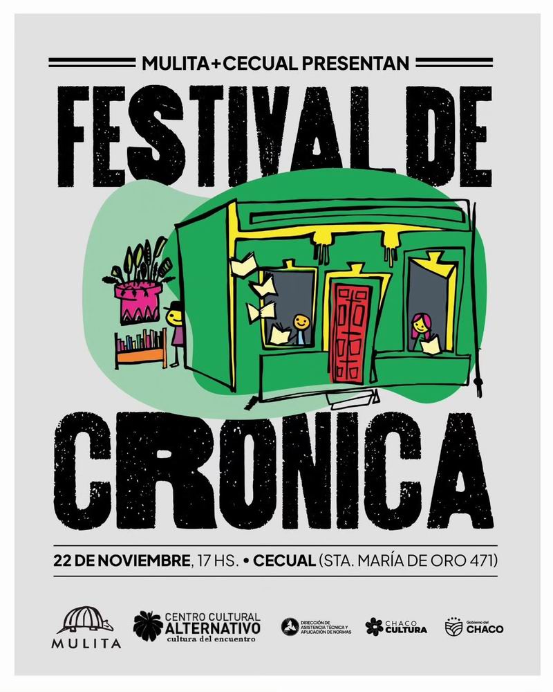 El sábado 22 de noviembre, desde las 17, se vivirá en el Centro Cultural Alternativo (Santa María de Oro 471) del Instituto de Cultura del Chaco una nueva edición del Festival de Crónica Mulita & Cecual, con gran despligue de charlas, entrevistas, libros, talleres, djs, banda en vivo, cervezas artesanales, delicias culinarias, entre otras muchas propuestas.