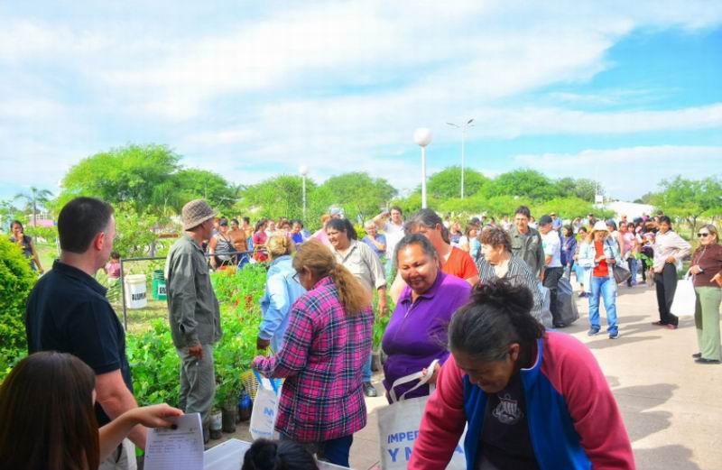 Una multitud de vecinos se acercó desde temprano para recibir sus plantas, entregadas a cambio de botellas plásticas, en el marco del programa municipal que promueve el reciclado y el cuidado responsable del ambiente.