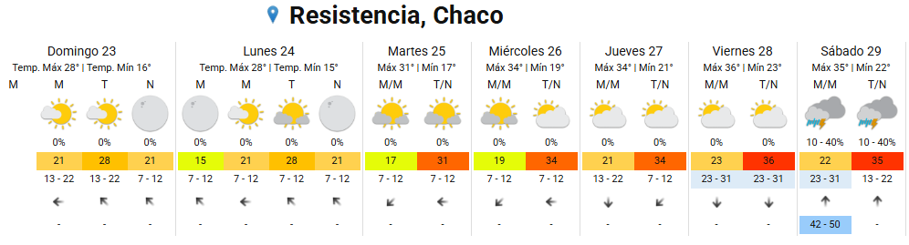 • Resistencia: domingo y lunes con clima agradable y sin lluvias