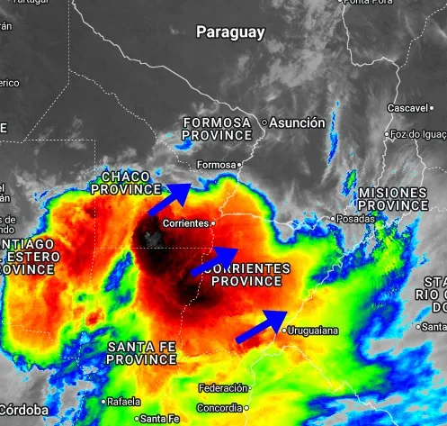 Áreas del sur del Chaco, norte de Santa Fe y centro-sur de Corrientes ya están siendo afectadas por lluvias y tormentas, que se desplazan de manera lenta sobre la región.
