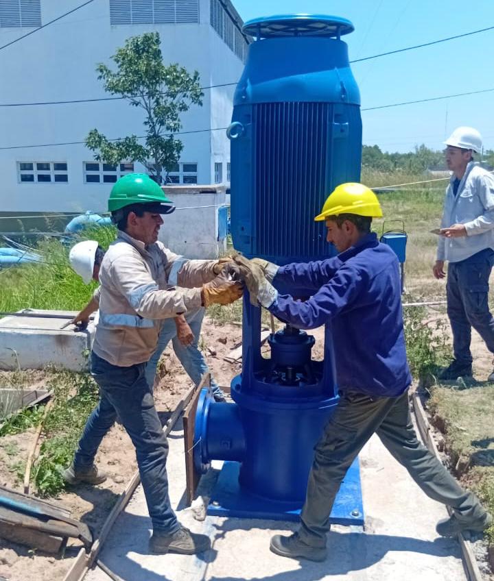 La empresa Sameep, a través de las gerencias de Producción y Electromecánica, avanza en la instalación de una nueva bomba vertical de 1.000 m³/h destinada a reforzar la impulsión desde la cisterna de Presidencia Roque Sáenz Peña hacia la línea del Primer Acueducto del Interior, que abastece a Villa Ángela.