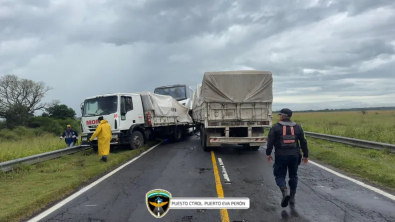Un choque entre un camión y un ómnibus en el km 1092 de la Ruta 11 provocó demoras en el tránsito; no se registraron heridos y se espera la llegada de una grúa para retirar los vehículos.