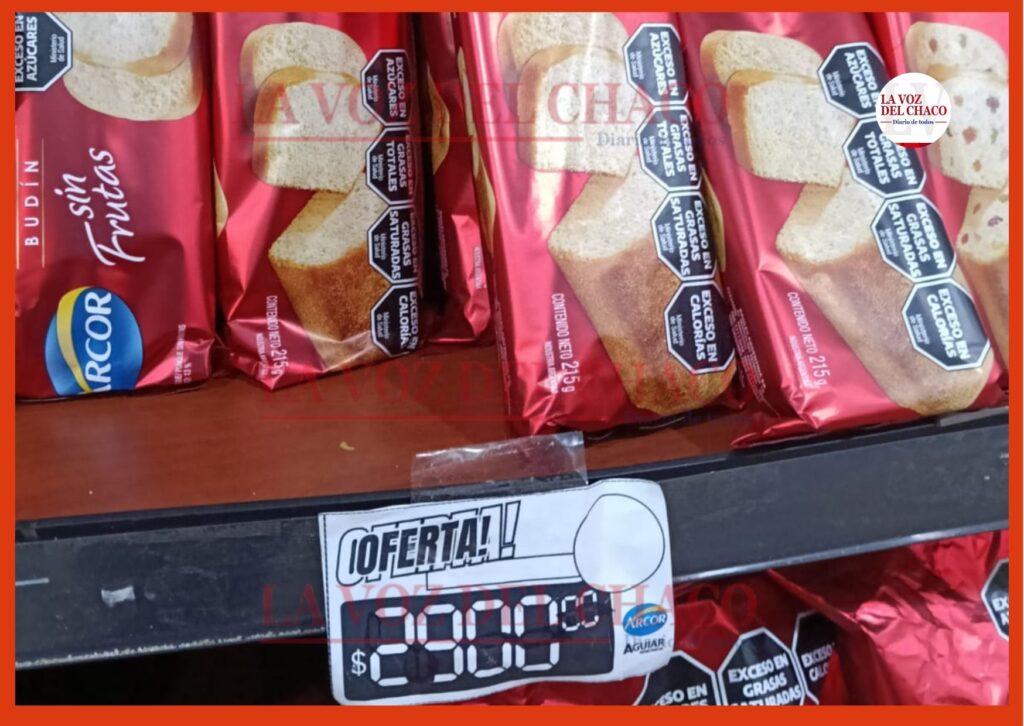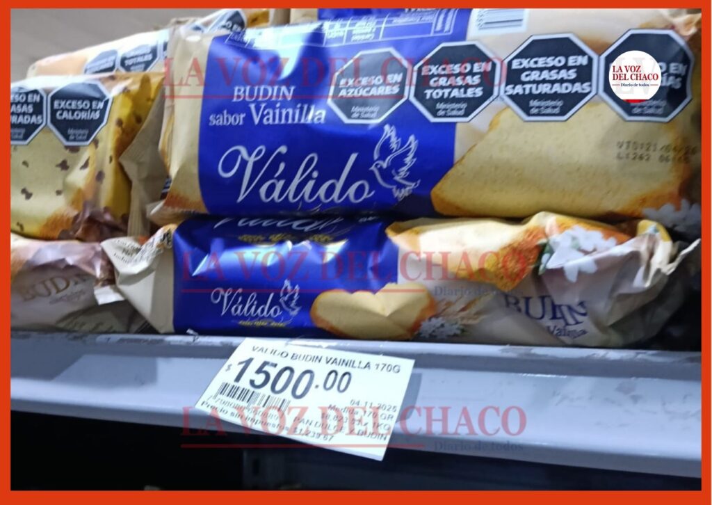 En el rubro de panificados, un pan dulce Don Satur sin frutas de 400 g cuesta $2.500, mientras que el pan dulce Arcor con frutas supera los $5.500. Las alternativas económicas son los budines de 170 g de la marca Válido —en sus variedades vainilla o chips— a $1.500. El budín Arcor de 215 g aparece en oferta a $2.900.