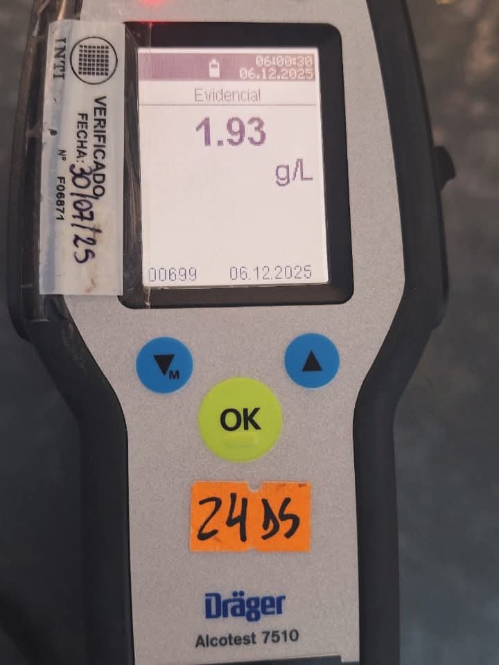 Al realizar el test de alcoholemia, el resultado fue de 1,93 g/l, además de comprobarse que el vehículo no contaba con seguro vigente. El auto fue retirado del lugar y se labraron las actas correspondientes.