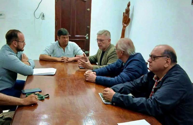 El presidente de la APA, Jorge Pilar, encabezó la reunión con el intendente Ariel Lovey y su gabinete, acompañado por los profesionales Carlos Depettris y Marcelo Gómez, integrantes del equipo consultor de la Facultad de Ingeniería y la Fundación Afin, responsables de los estudios hidrológicos y topográficos del proyecto.