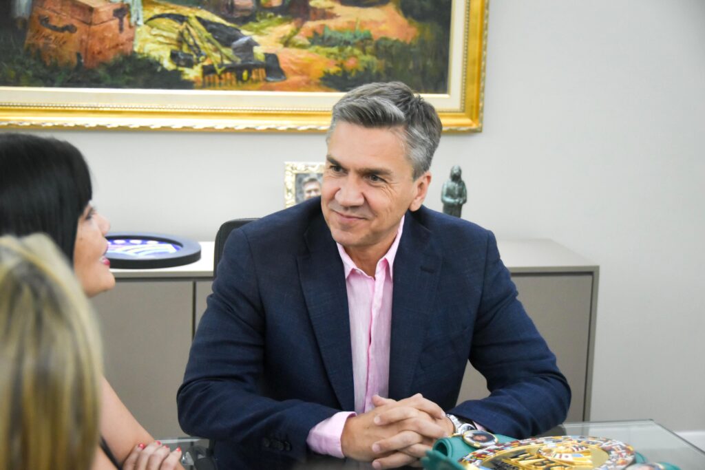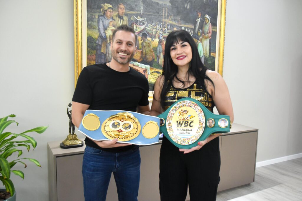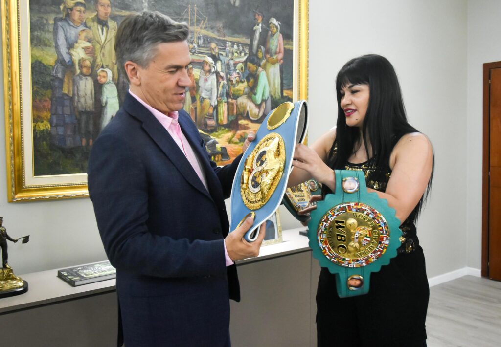 En Casa de Gobierno, el mandatario recibió ayer a la reconocida boxeadora Marcela “La Tigresa” Acuña, quien arribó a la provincia para llevar adelante el evento solidario “Puños Solidarios”, una jornada de exhibiciones de boxeo y kickboxing destinada a la recolección de juguetes para ser donados al Hospital Pediátrico.