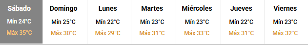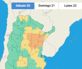 Para el domingo, se espera una jornada con condiciones similares, aunque con un leve descenso de temperatura. La máxima será de 30°C y la mínima de 25°C, con probabilidades de tormentas fuertes que oscilarán entre el 10% y el 40%.