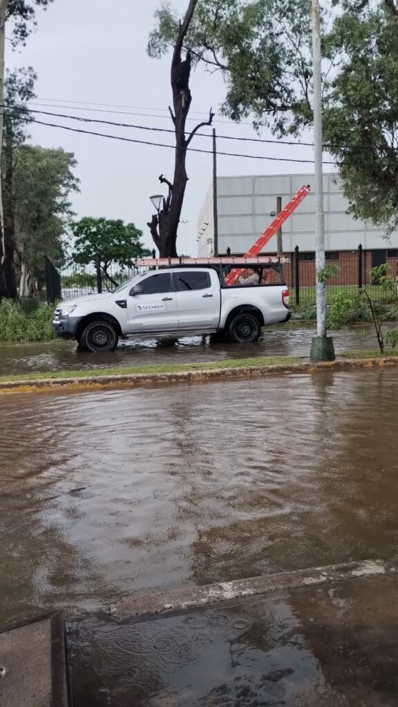 Cuadrillas de SECHEEP siguen trabajando en distintos barrios para normalizar el servicio. Desde la empresa explicaron que los fuertes vientos provocaron caída de árboles y voladuras de chapas, ocasionando cortes de líneas y afectando el suministro eléctrico en varias zonas.
