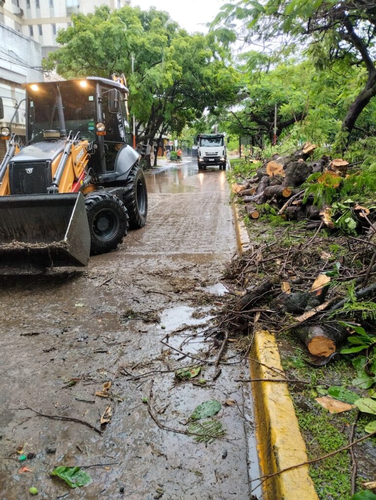 La Municipalidad de Resistencia mantiene el alerta meteorológico debido a las intensas lluvias y viento que azotaron la ciudad. Cuadrillas de las áreas de Desagües recorrieron la urbe para trabajar en el mantenimiento de los drenajes, mientras que personal de las áreas de Servicios, Paseos y Jardines y de Defensa Civil se encargó del retiro de los árboles caídos y despejar de residuos los cordones para evitar taponamientos.