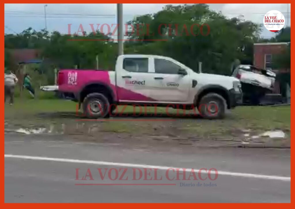 Una camioneta perteneciente al parque automotor del Ministerio de Desarrollo Humano volcó este lunes por la tarde en la ciudad de Barranqueras, tras perder el control mientras circulaba por avenida San Martín al 4500.