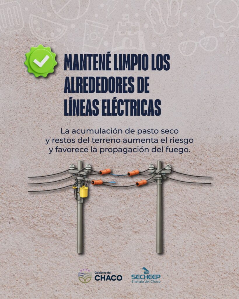 Desde SECHEEP se remarca que la prevención es una responsabilidad compartida y que el compromiso de la ciudadanía resulta fundamental para evitar este tipo de situaciones. Para reducir el riesgo de incendios y proteger el servicio eléctrico, se recomienda: