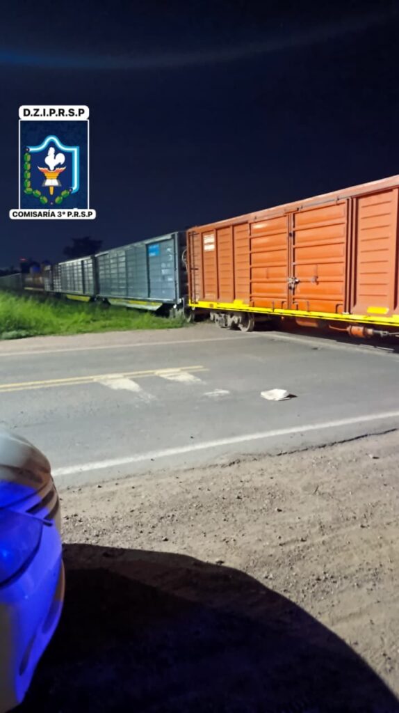 El incidente se produjo alrededor de la 1.30, en el cruce ferroviario de calle 1 y la Ruta Nacional N° 95, e involucró a una formación de más de veinte vagones de la empresa Belgrano Cargas.