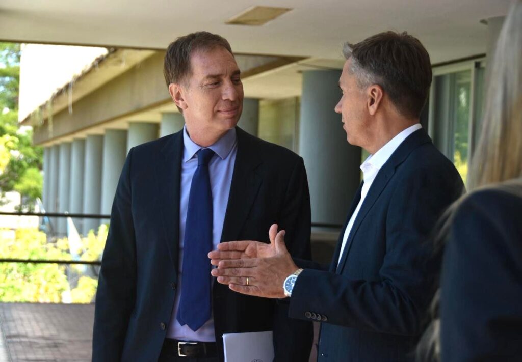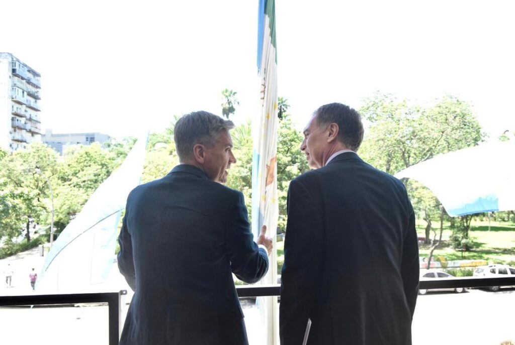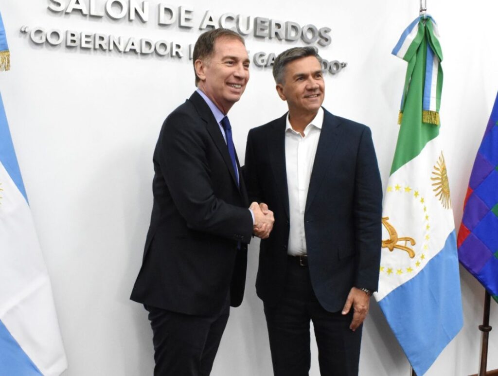 Santilli arribó a Casa de Gobierno cerca de las 11.20 y fue recibido por Zdero y miembros del gabinete provincial. Tras la reunión en el Salón de Acuerdos, ambos posaron para fotografías oficiales, tanto en el interior del edificio como en el balcón, en una señal política de sintonía entre la administración provincial y el Ejecutivo nacional.