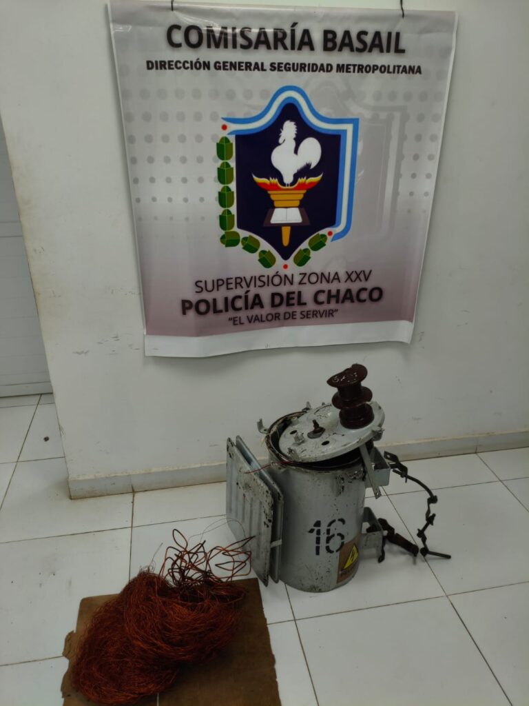 Tras la denuncia de una vecina domiciliada a la altura del kilómetro 946 de la Ruta Nacional 11, efectivos policiales desplegaron un operativo que permitió recuperar material conductor sustraído de un transformador eléctrico.