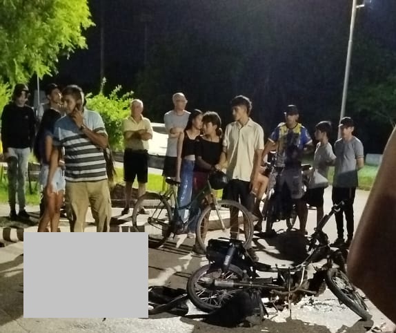 El incidente vial se produjo alrededor de las 21.30, en la intercección de la avenida y la calle 9, entre una camioneta tipo furgón, marca Mercedes Benz, en la que se desplazaban dos hombres 54 y 59 años de edad, y una motocicleta marca Zanella de 110 cc, conducida por un joven de 22 años de iniciales A.P.M., domiciliado en el barrio Belgrano, quien circulaba acompañado de Milagros de los Ángeles Frettes, de 17 años, domiciliada en el barrio Aipo 160 Viviendas.