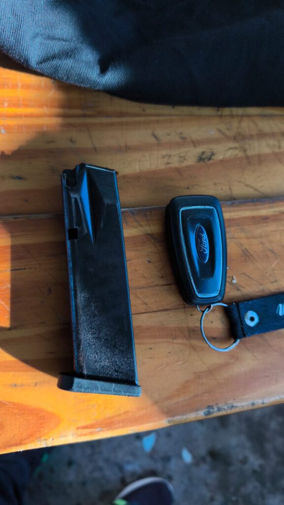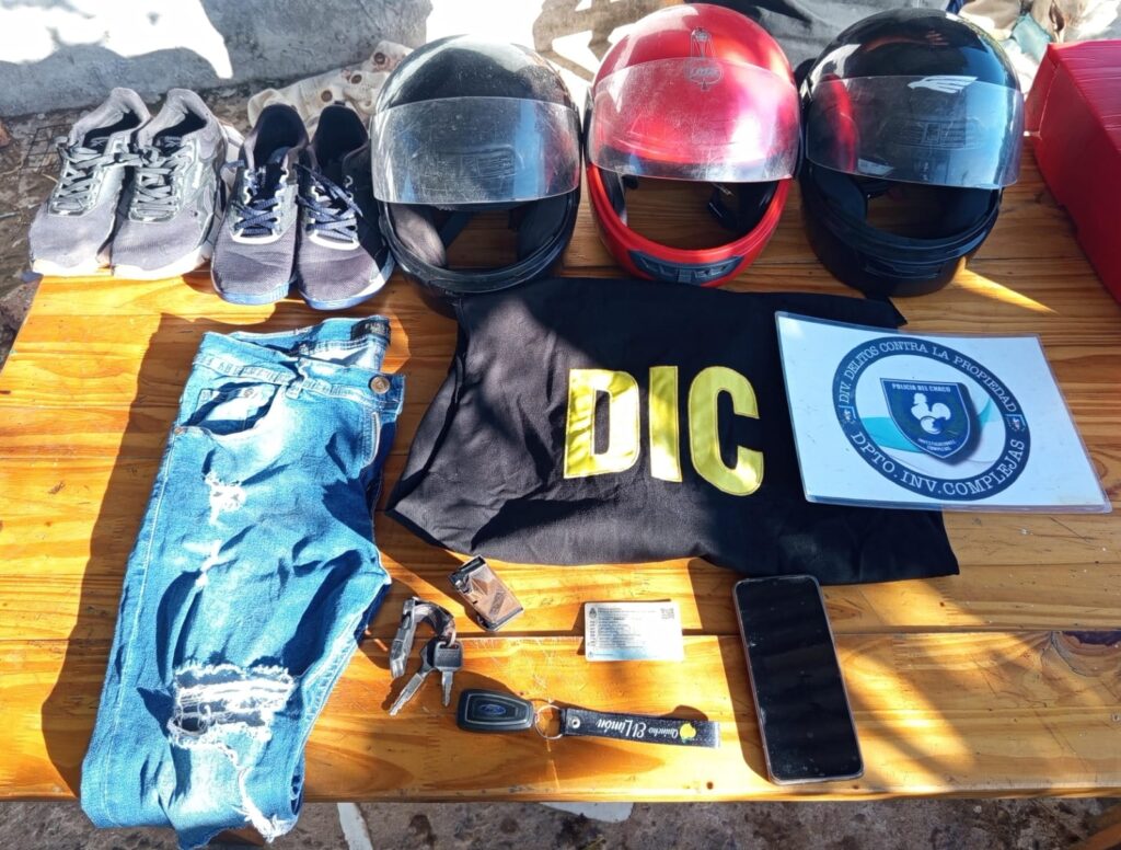 En forma simultánea, otro escalón del COE, irrumpió en la vivienda de San Juan al 1400 aproximadamente, donde si hallaron al buscado de 27 años, como asimismo incautaron una motocicleta Honda Biz, color blanca, una llave de encendido de camioneta Ford Ranger, un cargador de pistola 9mm., prendas de vestir y calzado, además de tres cascos de seguridad y un celular.