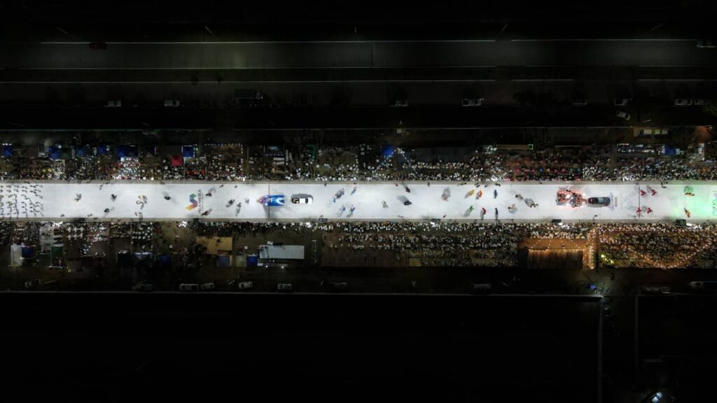 El evento se desarrolló en el Corsódromo emplazado en el Espacio Público de Usos Múltiples, dentro del predio del ex Ferrocarril, consolidado como escenario central de las celebraciones carnestolendas de la ciudad.