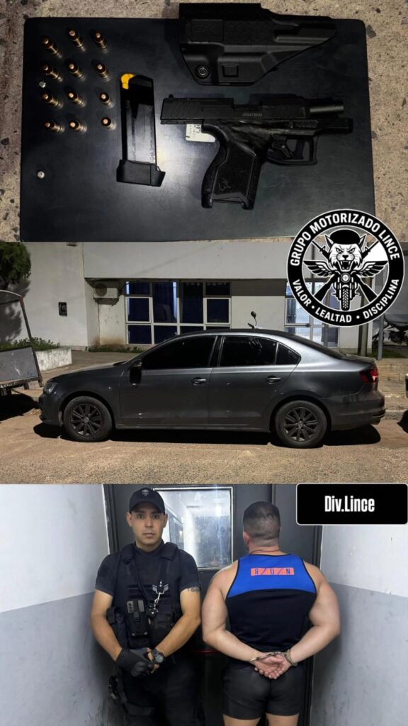 Al intentar identificar al conductor, este hizo caso omiso a la orden de detención, siendo finalmente demorado. Tras inspeccionar el interior del vehículo, se halló una pistola marca Taurus GX4, calibre 9 mm, con un cargador que contenía 12 cartuchos, además de su respectiva funda.