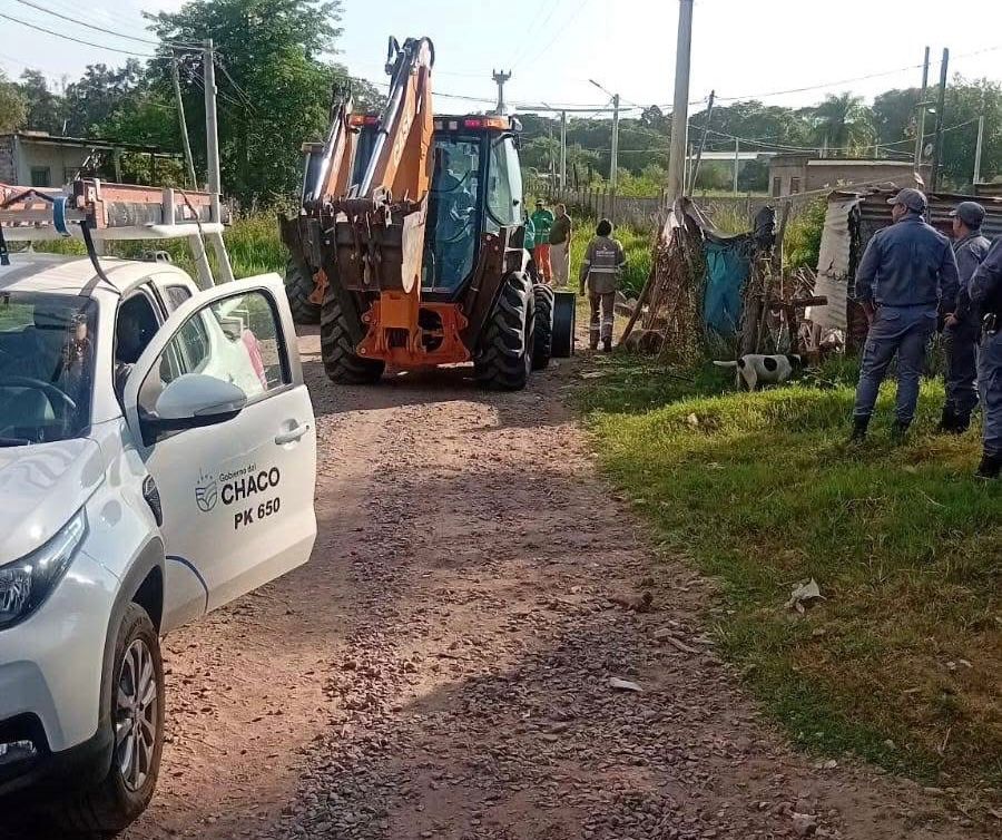 En un trabajo conjunto, la Administración Provincial del Agua (APA), la Municipalidad de Resistencia y la Policía del Chaco llevaron adelante un operativo de erradicación de un asentamiento y de un basural ubicados en un canal central de desagüe del Río Negro, en la zona de calle Ávalos y avenida Martina.