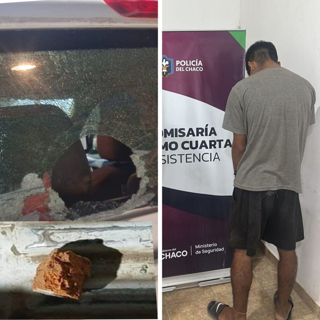 Al llegar al lugar, los efectivos constataron la presencia de varias personas protagonizando una riña. Al advertir la presencia policial, el grupo se dispersó en distintas direcciones. En ese contexto, uno de los involucrados arrojó restos de ladrillos contra el personal policial, impactando uno de los proyectiles contra un móvil policial y provocando la rotura de la luneta trasera.