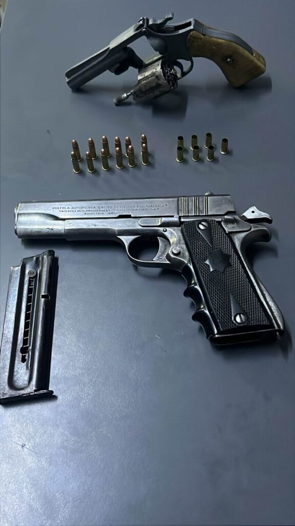 Hicieron entrega voluntaria de una pistola calibre 22 con cargador y un cartucho, también se secuestró un revólver calibre 22 con dos balas del mismo calibre.