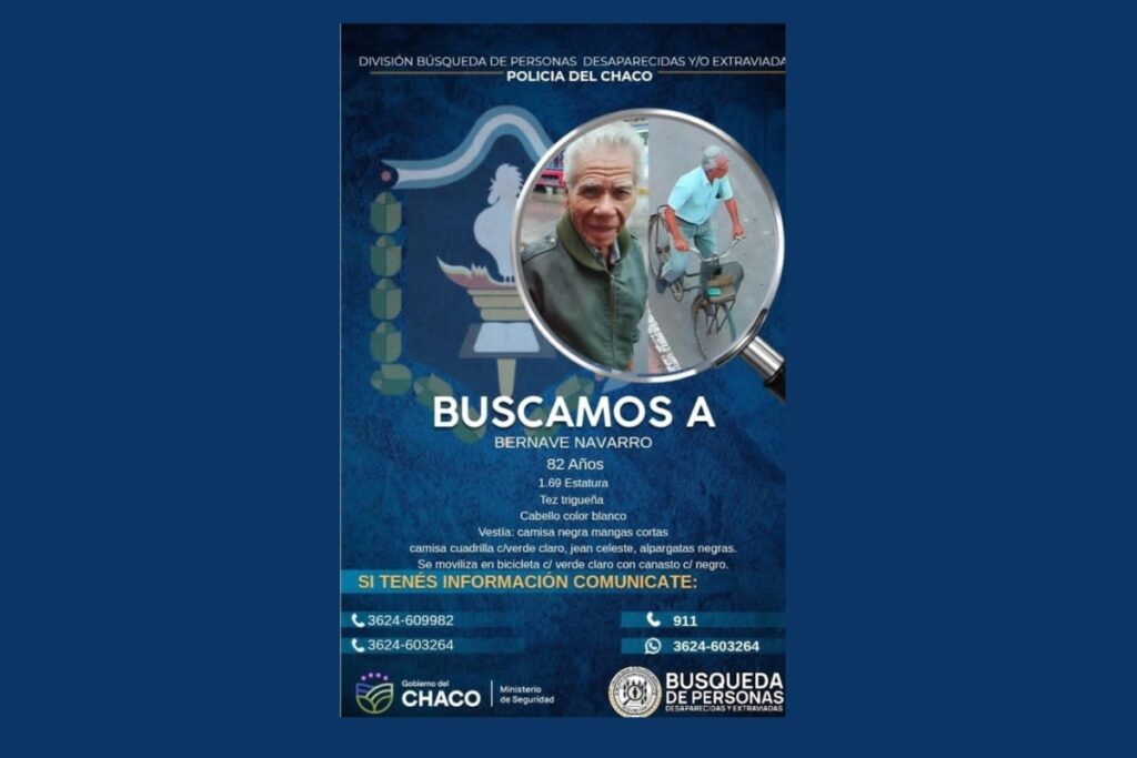El Gobierno del Chaco continúa desplegando un amplio operativo para intensificar la búsqueda de Bernabé Navarro, el hombre de 82 años que se encuentra desaparecido desde el pasado 1 de febrero. La Provincia mantiene comunicación permanente con los familiares y refuerza día a día las tareas de búsqueda con recursos humanos, logísticos y tecnológicos.