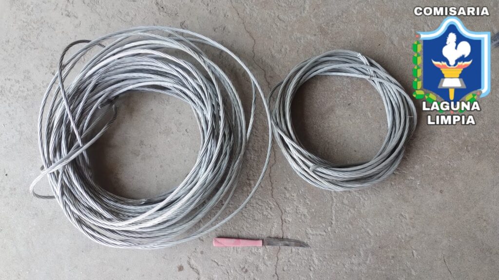 En la localidad de Laguna Limpia, efectivos de la Comisaría Local lograron recuperar cables de alta tensión y aprehender a un joven de 23 años implicado en el hecho. La intervención se produjo tras un llamado del encargado de SECHEEP, quien alertó sobre la presencia de dos hombres cortando cables de alumbrado público en un puesto rural.