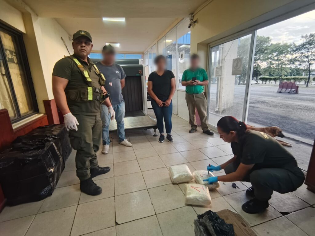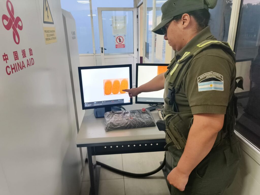 Al momento de la inspección, los uniformados inspeccionaron la carga y mediante un escáner, pudieron visualizar que una de las encomiendas poseía cuerpos irregulares amorfos.