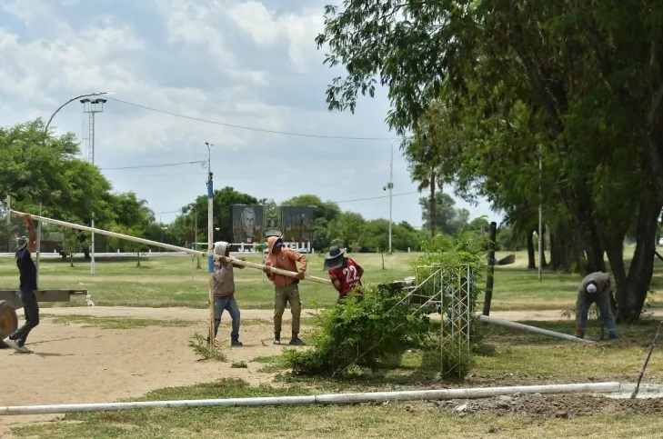 En este marco, se iniciaron los trabajos de instalación de iluminación en la cancha de Beach Vóley, ubicada en el ingreso a la ciudad.