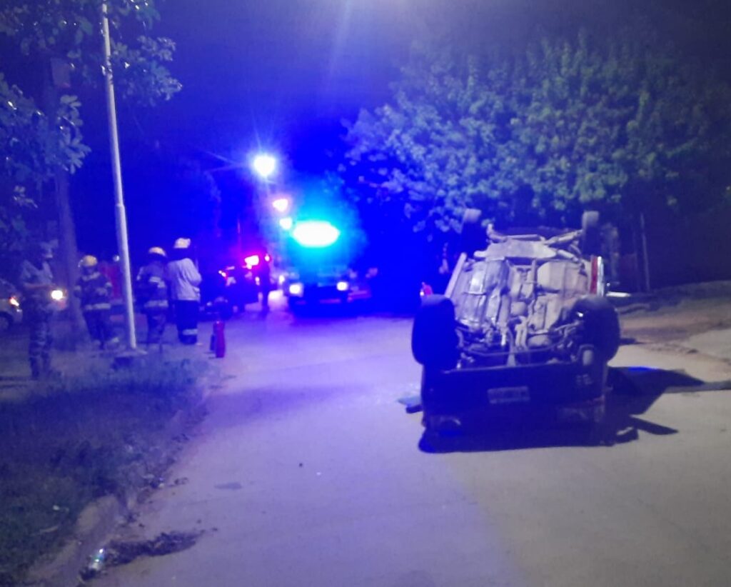 Un siniestro vial se registró durante la madrugada en la ciudad de Sáenz Peña, en calle 21 bis entre 34 y 36 del barrio Yapeyú. El hecho ocurrió alrededor de las 02:15, cuando vecinos alertaron al 911 sobre un automóvil volcado en la vía pública.