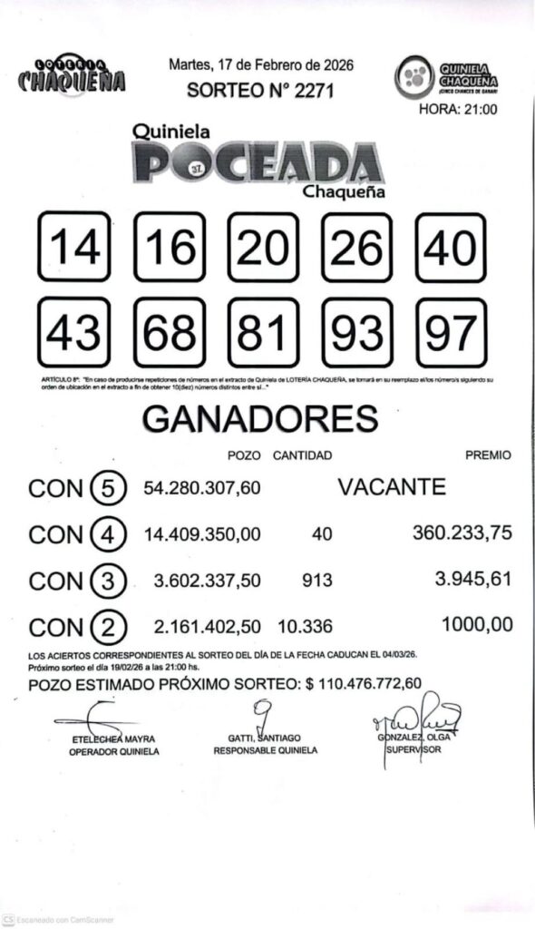 El sorteo del martes de la Poceada Chaqueña dejó sin ganador el premio mayor de cinco aciertos, aunque cientos de jugadores se llevaron premios menores. La expectativa crece de cara al próximo sorteo.
