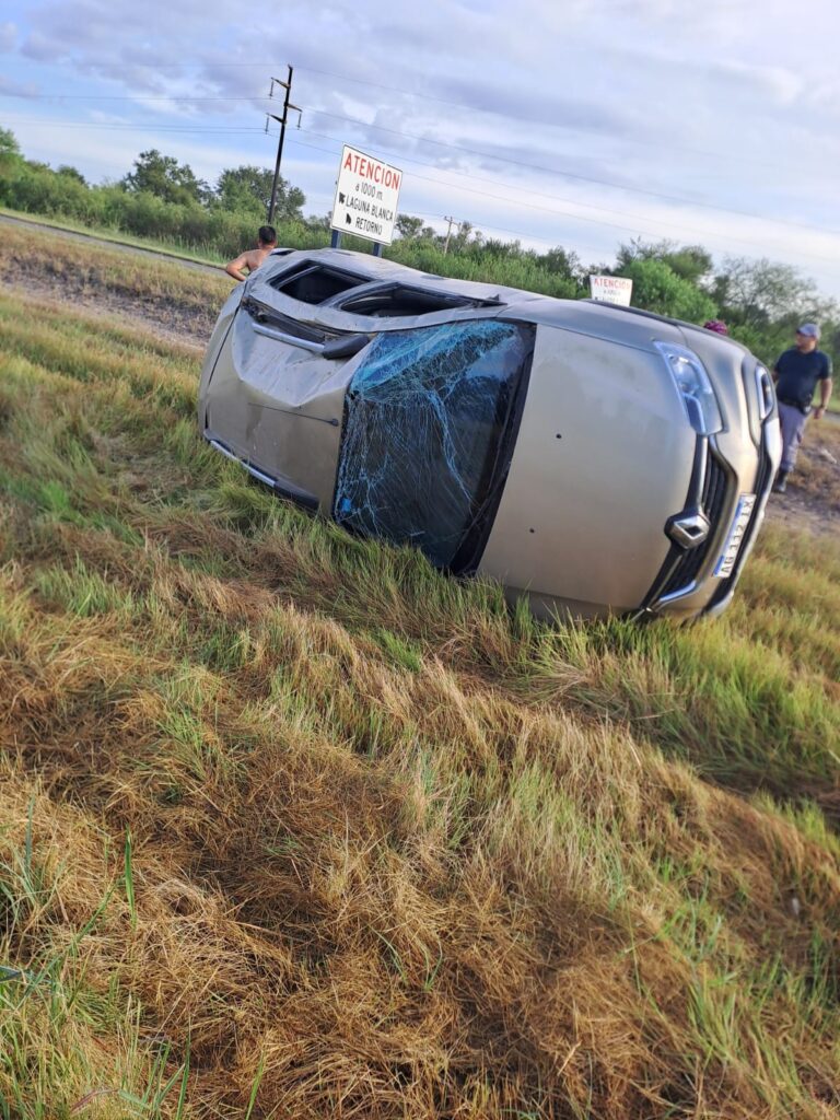 Un accidente de tránsito se registró este domingo por la mañana sobre el kilómetro 45 de la Ruta Nacional 16, en inmediaciones del acceso a Laguna Blanca. El hecho ocurrió alrededor de las 07:50 horas, cuando un automóvil Renault Sandero color beige perdió el control y terminó volcado sobre su lateral derecho, sufriendo importantes daños materiales.