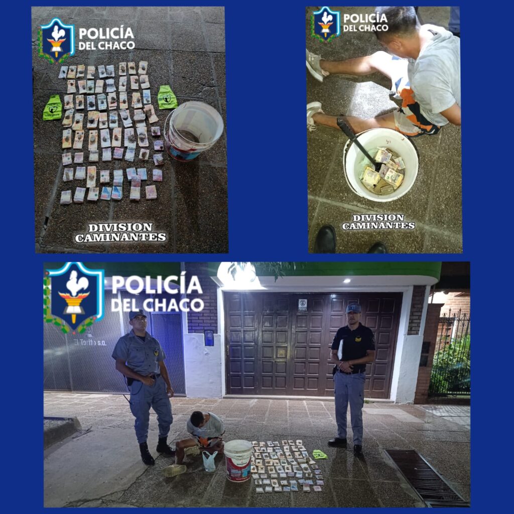 Efectivos de la División Caminantes interceptaron al sospechoso, quien circulaba de manera llamativa transportando un balde de 20 litros. Al inspeccionar el recipiente, los uniformados hallaron $688.300 en efectivo, discriminados en billetes de distintas denominaciones.