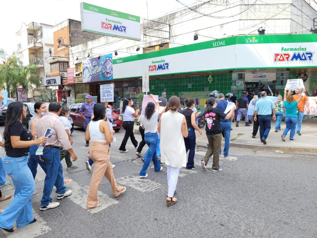 El conflicto salarial en el Ministerio de Producción del Chaco sumó un nuevo capítulo este viernes por la mañana, cuando trabajadores del área volvieron a salir a las calles para visibilizar su reclamo por el descuento del 80% de sus salarios, una situación que aseguran arrastran desde hace casi dos meses.