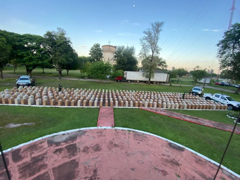 El procedimiento se llevó adelante a la altura del kilómetro 1.060 de la Ruta Nacional N° 11, donde efectivos de los Escuadrones 14 «Las Palmas» y 51 «Fontana» detuvieron la marcha de un transporte de cargas generales proveniente de Puerto Seco Boreal, Paraguay, con destino final la provincia de Buenos Aires.