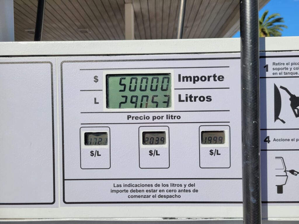 Por ejemplo, una carga de $50.000 permite obtener alrededor de 29 litros de combustible, según se observa en los surtidores, lo que refleja el fuerte impacto del precio por litro en el consumo cotidiano.