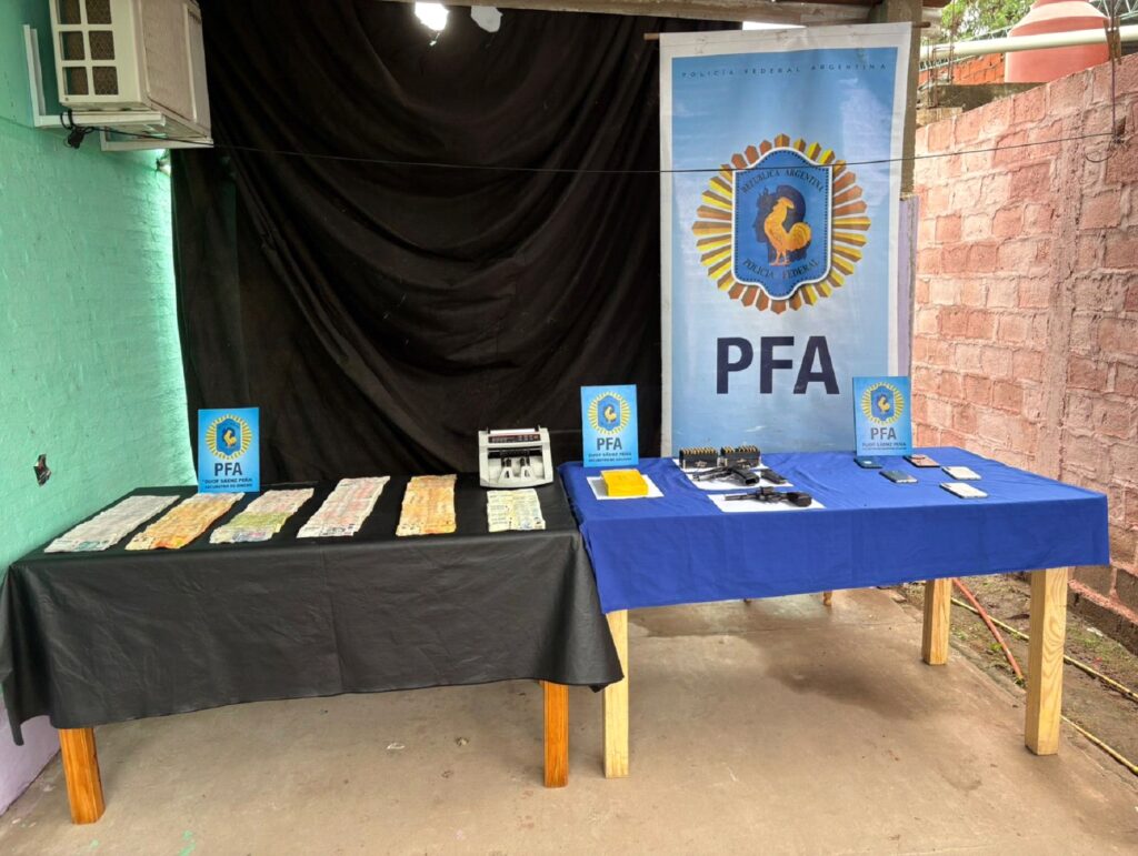 La Policía Federal Argentina (PFA) desarticuló varios puntos de venta de droga en la ciudad de Sáenz Peña, tras realizar tres allanamientos simultáneos que culminaron con la detención de tres personas y el secuestro de estupefacientes, dinero en efectivo, armas de fuego, vehículos y mercadería de origen extranjero.